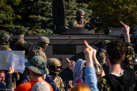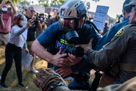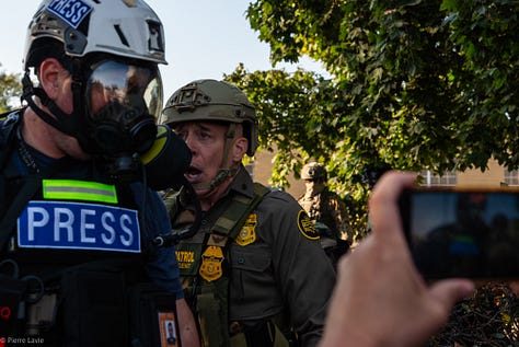 Journalists and activists have filed a lawsuit over the very brutality and forced used against them in the creation of these videos. Today, a judge issued a temporary restraining order that bars agents from arresting press, or from using tear gas and pepper spray on media and peaceful protesters (a decision I fully support after being personally shot at and shot in Broadview). Dumping tear gas on peaceful crowds makes for great footage, but DHS will have to figure out something else for now.