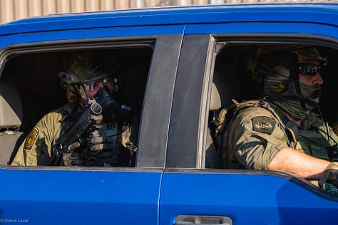 Here are some more photos of Broadview on 10/3/25, courtesy of a Texas based freelancer who has allowed me to republish them here. You can see the use of agents’ cell phone cameras and drones to capture the moment.