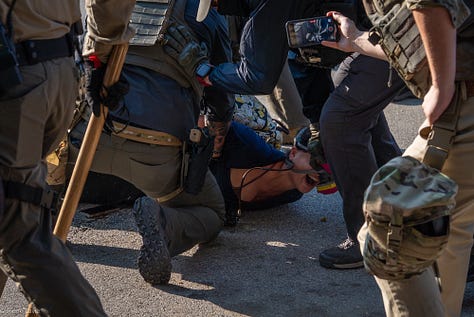 Creating content at the expense of American citizens isn’t anything new for the Trump administration. In August, the White House’s Twitter account posted a dramatic video showing two dozen federal agents conducting an arrest. While I was able to confirm the video captured the second arrest of Sean Dunn, who was seen on camera throwing a Subway sandwich at a federal agent, I was unable to figure out how rehearsed the actions were.